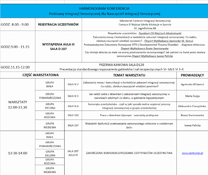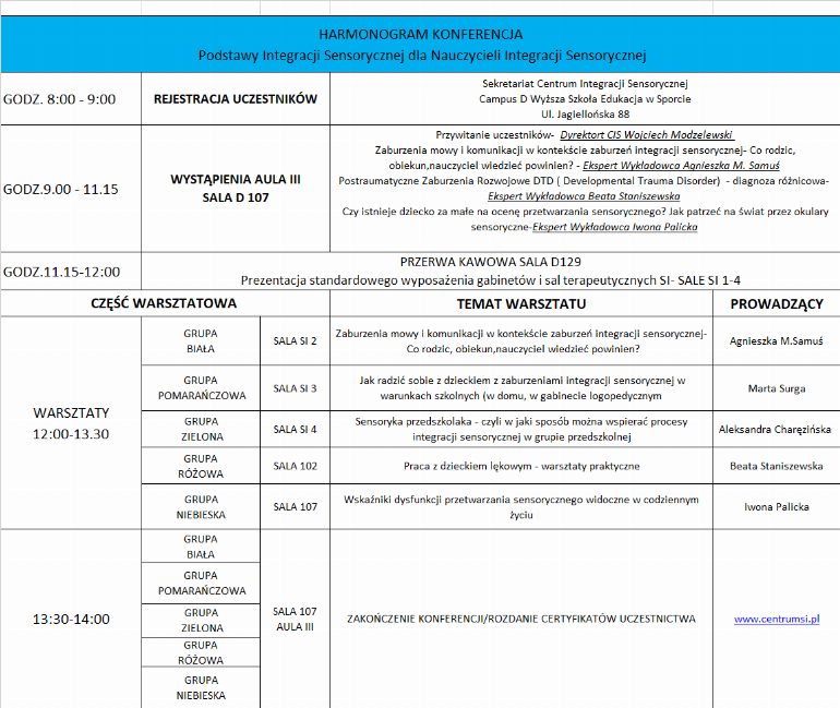 Konferencja odbędzie się w Warszawie przy ul. Jagiellońskiej 88 w dniu 16 kwietnia 2018 roku w godz.8.30-14.00 w Centrum Integracji Sensorycznej.