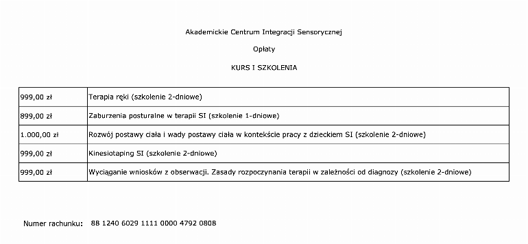 Obowiązują następujące opłaty za udział w kursach specjalistycznych:
